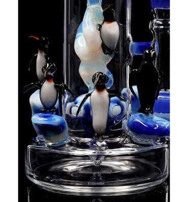 Questo magnifico capolavoro, il bong artistico in vetro Best-of-April 2025 di EHLE.®, è già stato immortalato da nove adorabili pinguini. Si sentono chiaramente a casa loro dentro questo fantastico bong, la cui combinazione di colori, blu e bianco, irradia anche la piacevole temperatura dei nostri amici dondolanti.